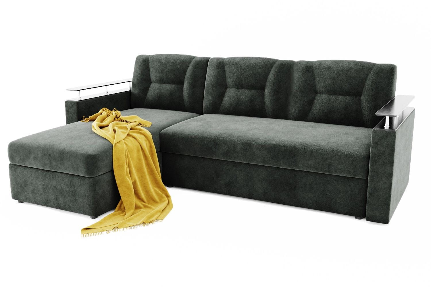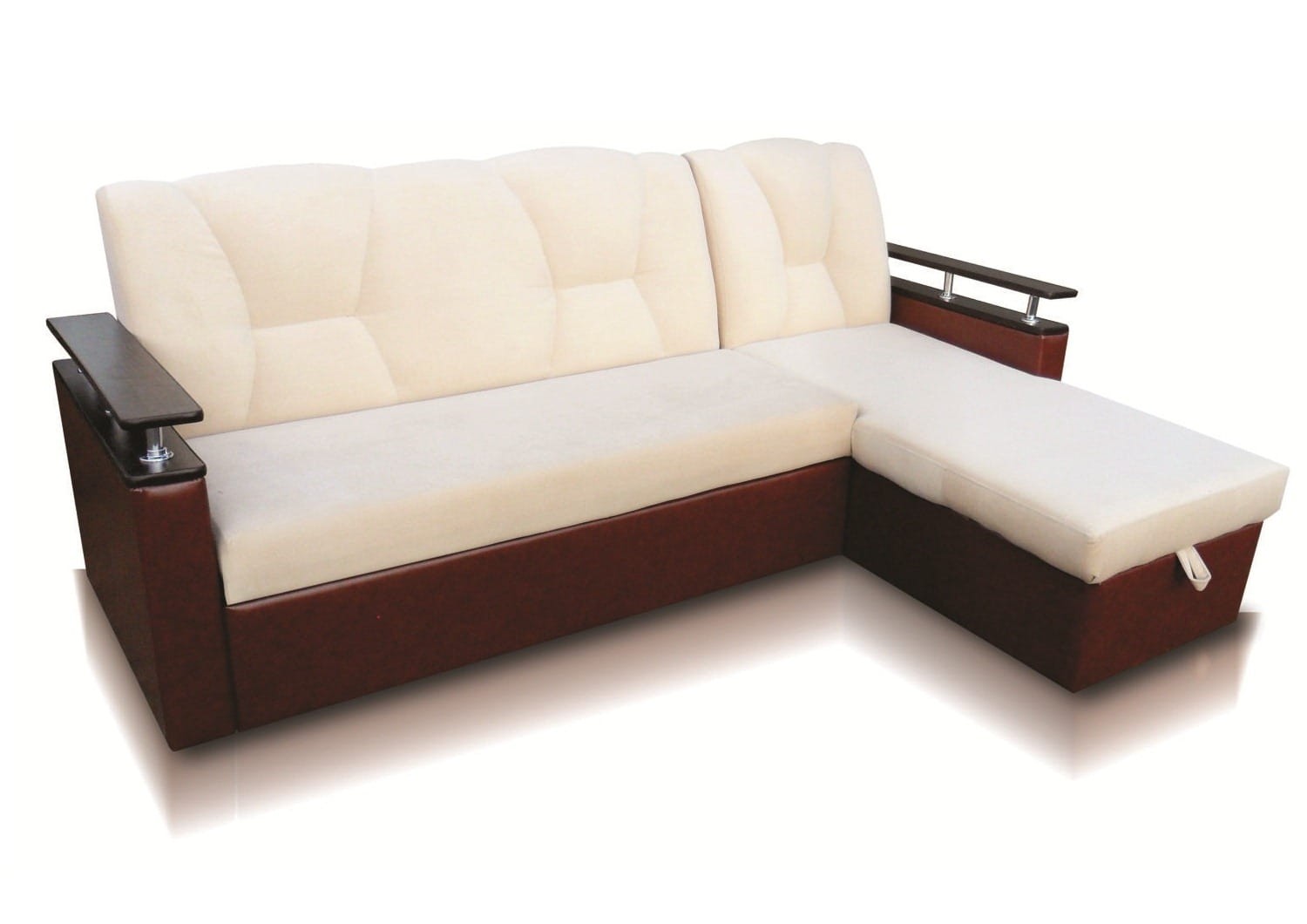 Особенности дивана: Изысканный и стильный трансформер для оригинальных дизайнерских решений. Практичный и вместительный: имеет большой ящик для белья, удобную оттоманку и просторное спальное место. Поможет выгодно зонировать пространство за счёт угловой модели. Толщина ППУ - 100 мм. Глубина сидения: 63 см. Доставляется в разобранном виде: локти, оттоманка, диван. Сзади дивана техническая ткань. Локти к дивану цепляются на салазках.
