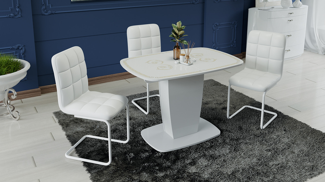 Стол Раздвижной «Аризона» Тип 2 Белый Глянец Разный Принт/Д-1100/1420 мм x Ш-770 мм x В-750 мм